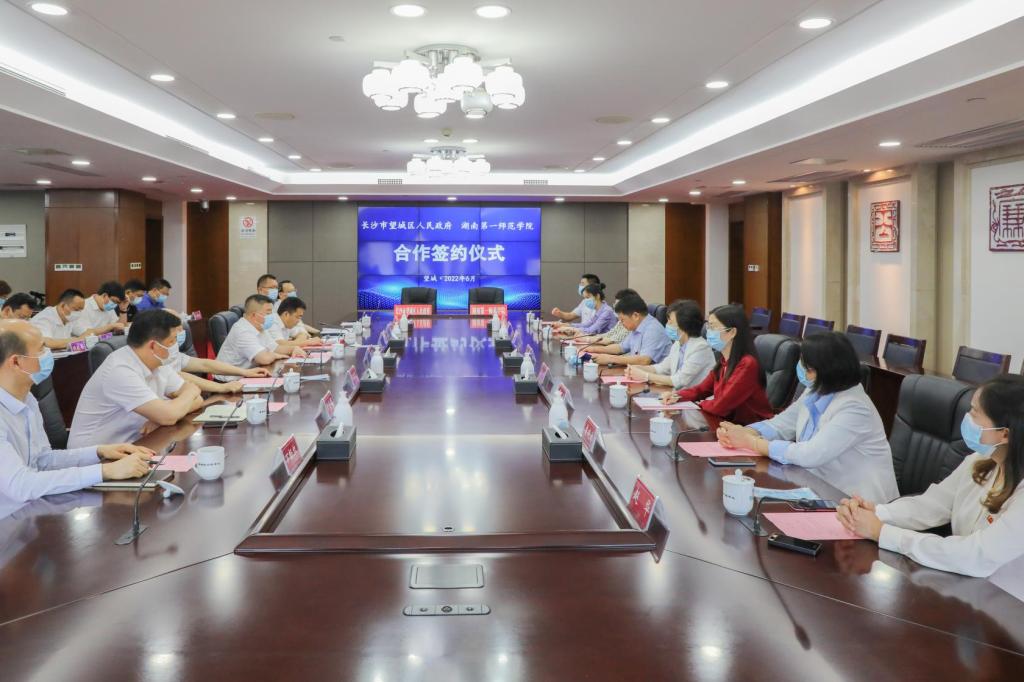 公司党政办主任任晓晴、yl1111永利集团/教师培训公司经理曾晓洁、副经理张俭明、院办公室主任刘峰、合作办学科科长赵华等一行和望城区有关部门领导见证签约。