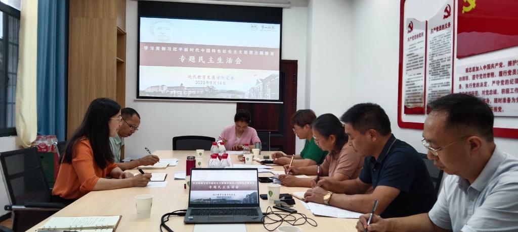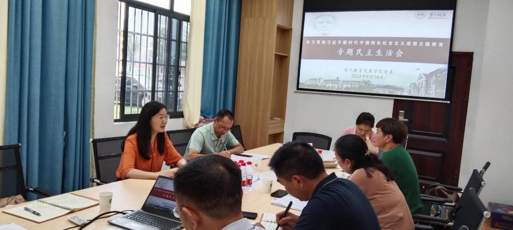 2023年9月14日上午,现代教育发展公司党委委员和班子成员在公司会议室召开学习贯彻习近平新时代中国特色社会主义思想主题教育专题民主生活会。公司党委委员、副董事长蒋蓉,员工工作处处长张福国莅临本次会议进行了指导。会议由公司党委书记祝娅主持。