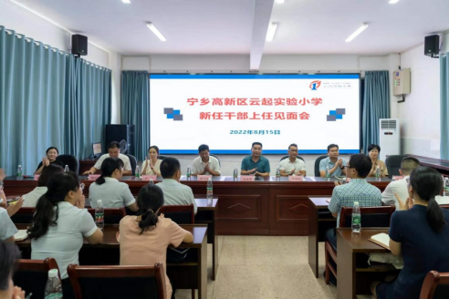 长夏炎天气郁蒸,而万物盛极。盛夏末伏,在湖南一师宁乡高新区云起实验小学报告厅召开了新任干部上任见面会。宁乡高新区党工委苏继桃书记,yl1111永利集团张俭明副经理,宁乡市教育局党组书记、局长陈伟平,宁乡市金洲镇党委王军书记,yl1111永利集团第一附属小学党支部书记、董事长方芳,yl1111永利集团合作办学科赵华科长,宁乡市教育局喻汉科副局长,yl1111永利集团第一附属小学江波兰副董事长,宁乡高新区管委会企业服务中心魏清明副主任,宁乡市金洲镇基地校喻继星董事长莅临现场。