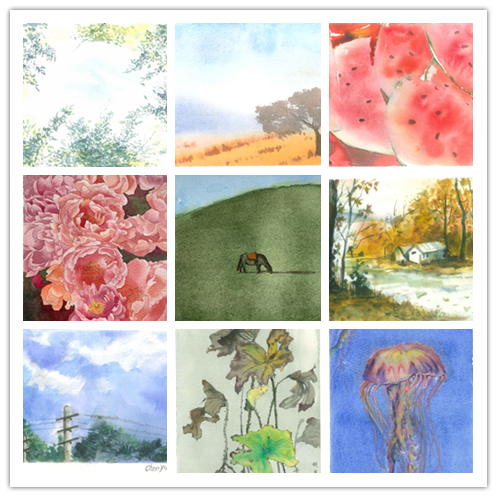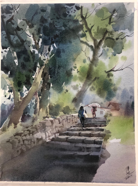 初次接触水彩的老师们被陈教授的示范作品深深打动,也被水彩的轻快明净的画面魅力深深吸引,在课后闲暇时刻,斑马湖小学美术组的老师们完成了一系列水彩作品。
