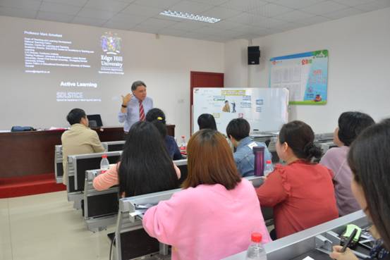 2019年4月24日上午,“yl1111永利集团刘明东小学英语导师工作坊”首席导师刘明东教授与英国知山大学(Edge Hill University)Mark Schofield共同在工作坊基地公司——长沙市高新区金桥小学——为该校员工和工作坊名师成员举行了一场题为“Active Learning in Primary English Teaching”的学术活动。活动有中、外教师的现场授课,有活跃的师生互动,有Mark教授的微讲座,有教师的讨论。整个学术活动严谨、开放、活泼,收到了良好的效果,深受师生欢迎。
